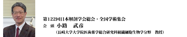 この度、「第122回日本解剖学会総会・学術集会」を長崎大学大学院医歯薬学総合研究科医療科学専攻生命医科学講座組織細胞生物学分野(旧医学部解剖学第三講座)でお世話させて頂くことになりました。伝統ある本学会を長崎で開催できます事、大変光栄に存じる次第であります。また万全の体制を組むために、肉眼解剖学分野の弦本敏行教授並びに形態制御解析学分野の森望教授に副会頭に就任頂いております。更に、歯学部口腔解剖学2分野と保健学科の解剖学担当教室を含め実行委員会を立ち上げて参りました。記録によりますと長崎では、1931年第39回大会(国友鼎先生)、1968年第73回大会(安中正哉先生)以来三度目の開催となります。