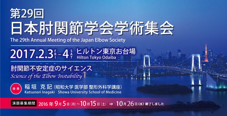 第29回日本肘関節学会学術集会はお蔭様をもちまして成功裡に終了いたしました。